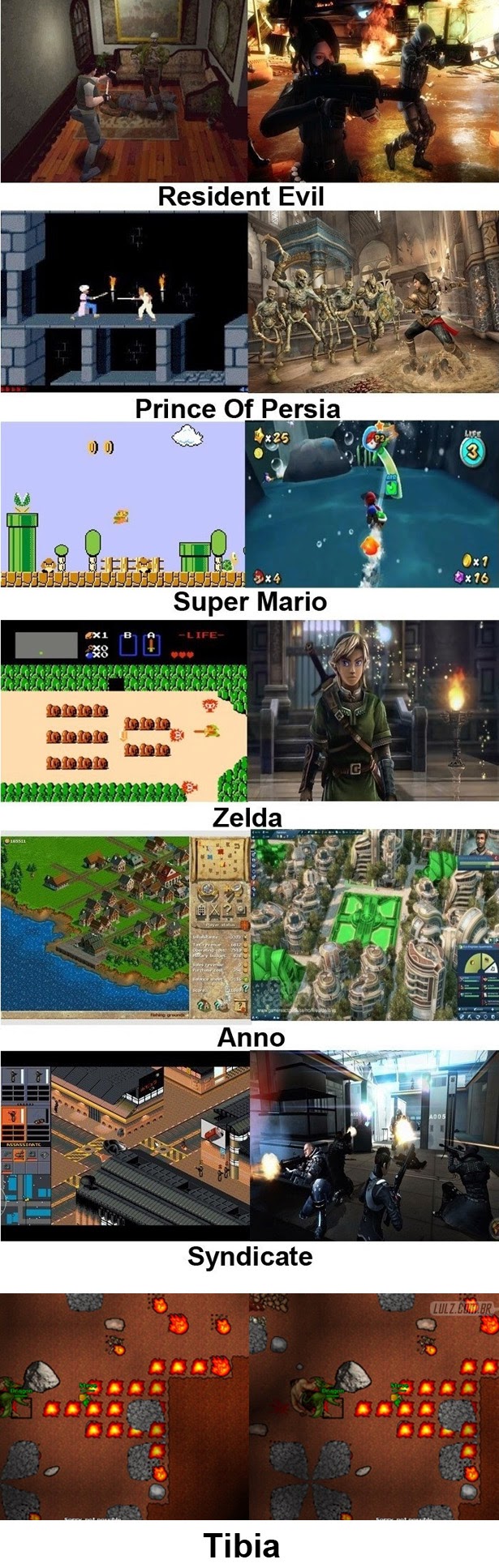 Estranho, algumas comparações comparam versões antigas de GAMEPLAYS com versões novas de CUTSCENES. A pessoa que fez isso deve manjar bem hein.