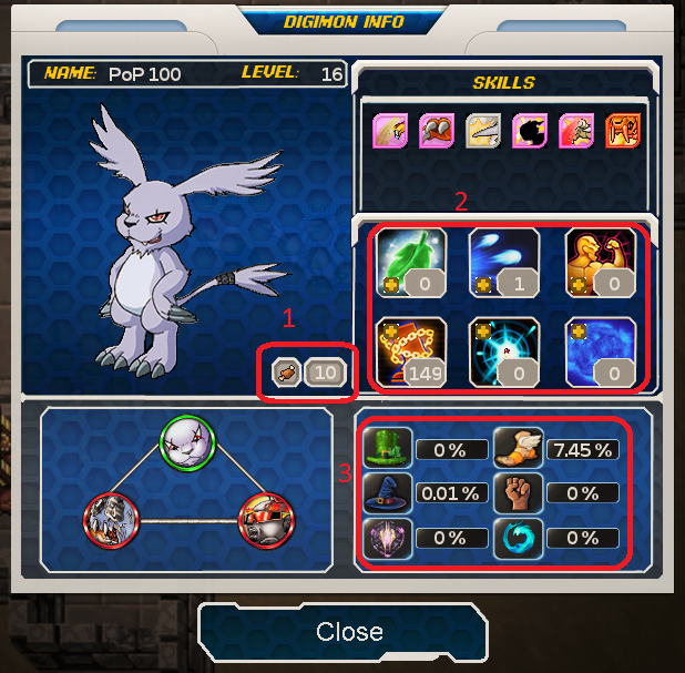 Behind this system, each level conquered by your Digimon will be possible to distribute an amount of points in attributes