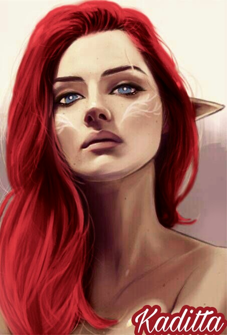 Kaditta fechava o seu último livro do dia, suspirando cansada. Debruçava-se em cima da mesa, com um semblante frustrado, deslizando os dedos por cima da capa. Trajava um confortável vestido de linho vermelho, com detalhes de fustão em preto. Pendido em seus braços, estava uma longa echarpe negra feito de gaze. Era cuidadosamente fabricada a mão para não haver sinais de costura em seu tecido. Com os braços relaxados do lado do corpo, a echarpe agora estava arrastando em seus pés. Seus cabelos estavam presos para trás, numa longa trança grossa. Isto era uma novidade, visto que Kaditta preferia deixa-los soltos ao vento. Tal preferência condizia com o seu espírito livre; suas longas madeixas da cor do fogo era um símbolo de liberdade. Criando coragem para deixar a preguiça de lado, Kaditta se levanta da cadeira de madeira e leva o livro para a estante, guardando-o em seu devido lugar. Quando tudo está em ordem novamente, sai da biblioteca e tranca a fechadura com uma pequena chave de prata, levando-a em mãos pelos túneis do deserto até encontrar Hagor, para deixa-la com ele.