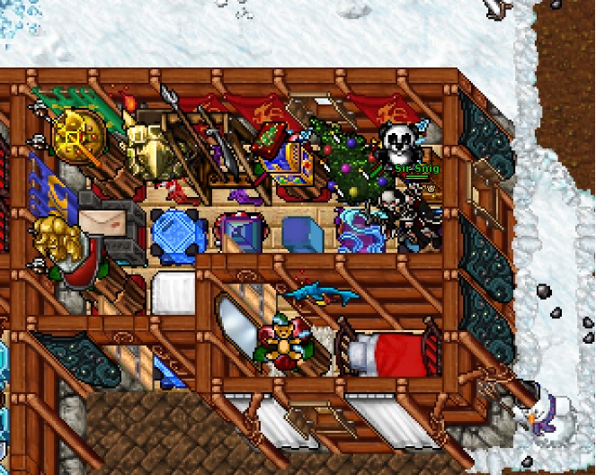 Gostaria de fazer uma pequena introdução: Com o objetivo de celebrar esta data, procurei decorar a casa com aquilo que me trouxe boas lembranças e, ao meu ver, representam felicidade. Em maior destaque, na porta de entrada, estão os presentes dos Reis Magos para Jesus (ouro, incenso e mirra). Em minha religião, estes itens tem um significado muito bonito na minha opinião, e fiquei feliz que pude apresentá-los de uma forma clara. Trouxe também algumas comidas e enfeites que fizeram parte da minha trajetória no Taleon e se encaixam bem nessa decoração. A rena (que está apenas dormindo :p) não desaparece, pois é um respawn diário.