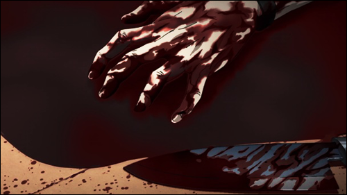 Havia uma poça de sangue abaixo do corpo de sua mais nova vítima. A roupa quase que destruída pela grande quantidade de facadas que havia levado. Nada demais, apenas um convidativo de sua crueldade insana para satisfazer o grande rancor que levava consigo. Ela deslizava os dedinhos pelo peito perfurado da vítima, era possível de ver até seus órgãos e acima de tudo, muito, mas muito sangue. Na verdade, ela estava completamente banhada de sangue. Sua capa negra, seu capuz, seu rosto... Suas mãos. Brincou com a vítima até se machucar. Nada que um corte no braço, nada sério e o mais importante: nada que a impedisse de perfurar aquele corpo cinquenta e quatro vezes.
