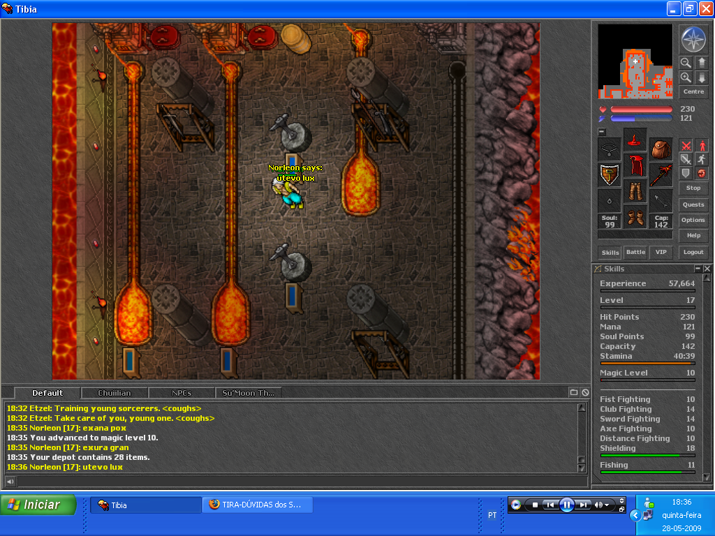 Sobre magias, use as de ataque instantâneo (ex: Fire Wave), as runas mais úteis (ex: HMM, Stalagmite, GFB, Explosion, SD). E é claro que as magias de suporte (exura, exana pox...)