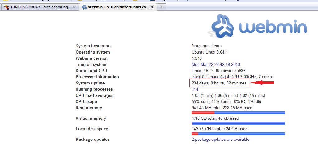 Abaixo uma prova de que os nossos servers praticamente nunca caem. 204 dias de uptime não é pra qualquer um.