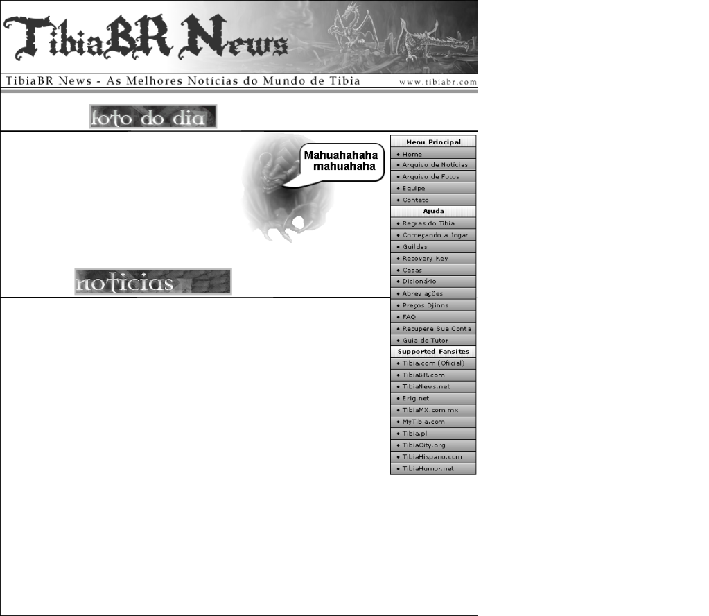Eu lembrava muito pouco desse TibiaBRNews. Fomos nós que fizemos a idéia original do que hoje é o Hotnews, e eu nem me lembrava disto. Eu lembro que nós dois atualizamos o site do TibiaBR quase que todinho.