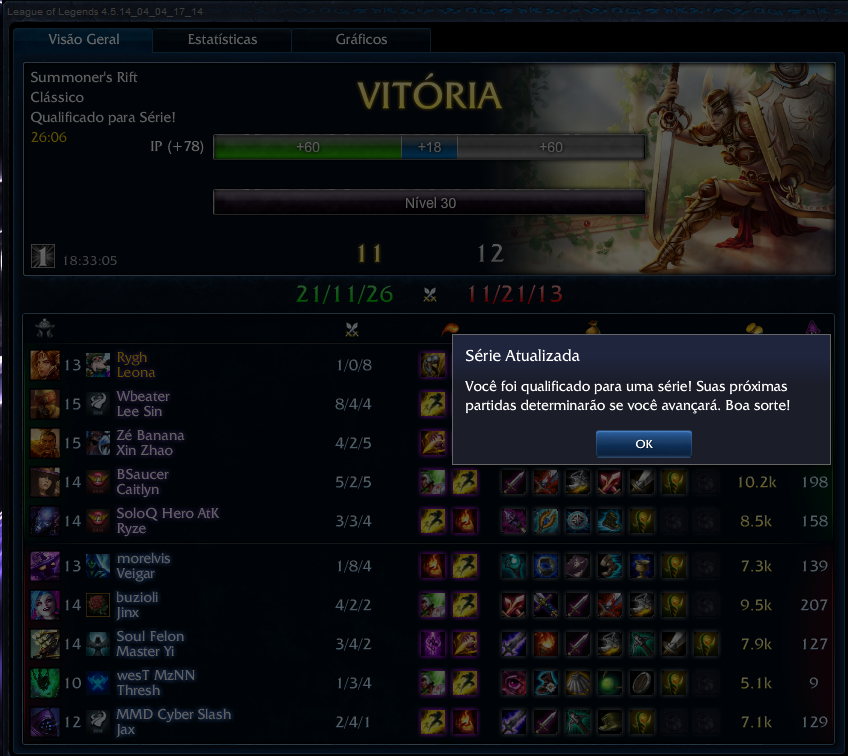 Btw, concordo com slann... vc tem mt mais coisas pra se preocupar do que com o elo... sua mecânica com a maioria dos champs que cê joga é bem torta... Lembro que cê era main blitz e depois do ultimo game que jogamos contigo de blitz, me doeu o pâncreas lek...