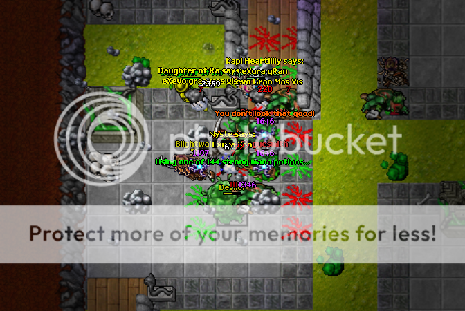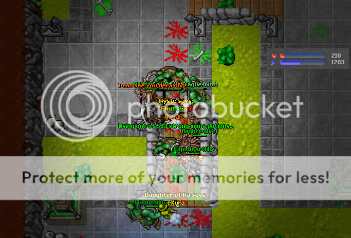 Bem + umas Screens \o lol Site do Tibiacam TV falhando para dar upload de cam's dai tenho umas screenshots, não fiquei chatiado nem nada com as deaths, ate porque todos divertimos e faz parte do jogo ne xD fazia tempão mesmo que nao brincavamos juntos, dai foi muito legal para mim \o Morte de Nyste.. 4 Phatasms + Nightmare = De + (4 verdaeiros nao summons...) e Ra foi Head Shot de 2 nightmare bomb + melle de GS ._. e eu morri como sabem com aquele mar de Hell's ._. xD ta ai algumas action pics \o