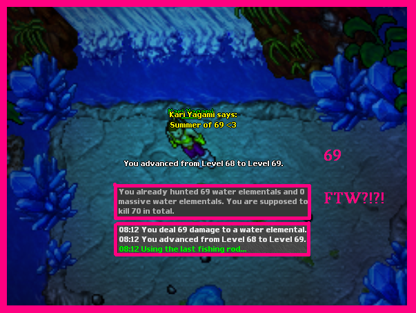 Cam, Matei cerca de 100 Water elementals, Level up e Screen de Loot!