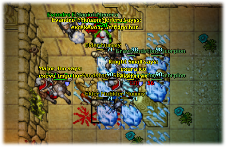 Neste mesmo momento, todo mundo resolveu ir em busca do reins... 3 pessoas lá em yalahar, todos nas coitadas das criaturas em busca do primeiro reins. Ficaram um tempão lá e um felizardo conseguiu um... sortudo do caramba!