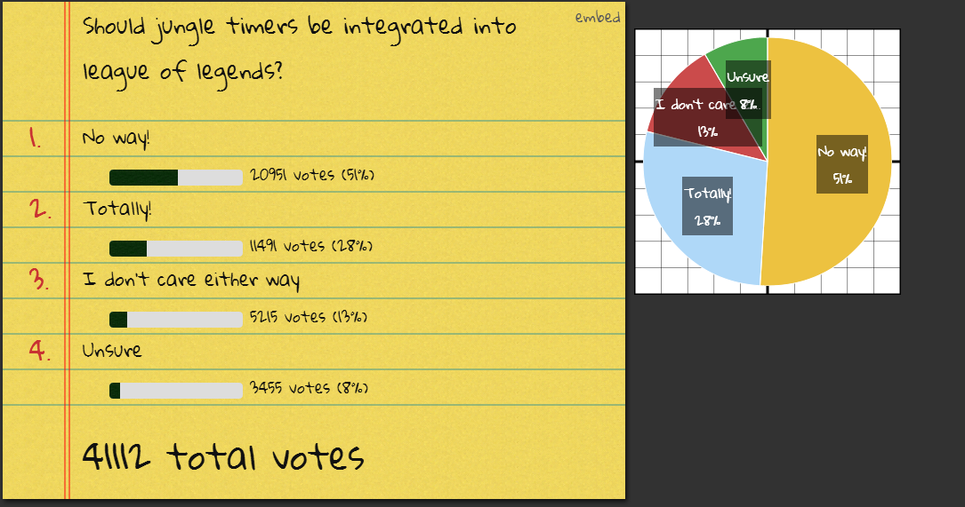 Tá tendo maior discussão sobre isso nos fórums e acho válida a reclamação dos junglers de ofício sobre a automatização do tempo, até porque é algo que tem que se empenhar um pouquinho pra fazer. Na maioria dos jogos low elo os junglers não marcam o tempo no chat (ex: blue 0720) e isso dá muita vantagem pra quem consegue fazer através da preparação para objetivos maiores, como Dragon e Baron.