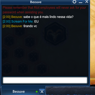 A riot não tem algum sistema de resetar o elo não? Seria melhor pra voltar e pá, mas é isso ai vei ggwp acabar c joguin. E eu lembro que uma vez vc mandou uma msg pro mylon e ele te respondeu td estranho aeuahueahue