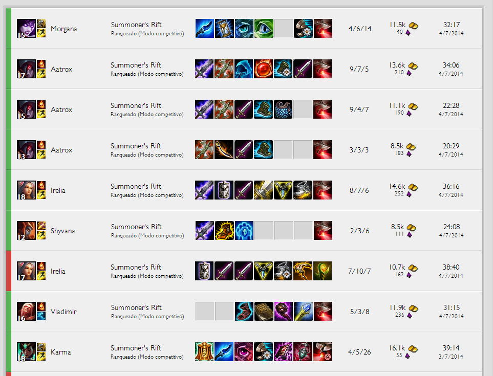 Comprei irelia e fui testar, primeiro um amigo gold me chama pra jogar com outro prata, acabei testando sem nem saber como funcionava o boneco direito, todos do outro time era gold/prata, na minha visão fui mo bem no jogo, fui top farm do meu time, mas esse meu amigo e o outro jogaram mal demais, um tava 0/3 de lee sin com 4mins, tentando invasão retardada, outro era uma kat que até pegava kills por conta do champion, mas terminou 10/14... Daora era ver meu adc (gold 1) sem a MÍNIMA noção de mapa, sendo pego 500x fora de posição comigo pingando pra ele voltar wtf o0