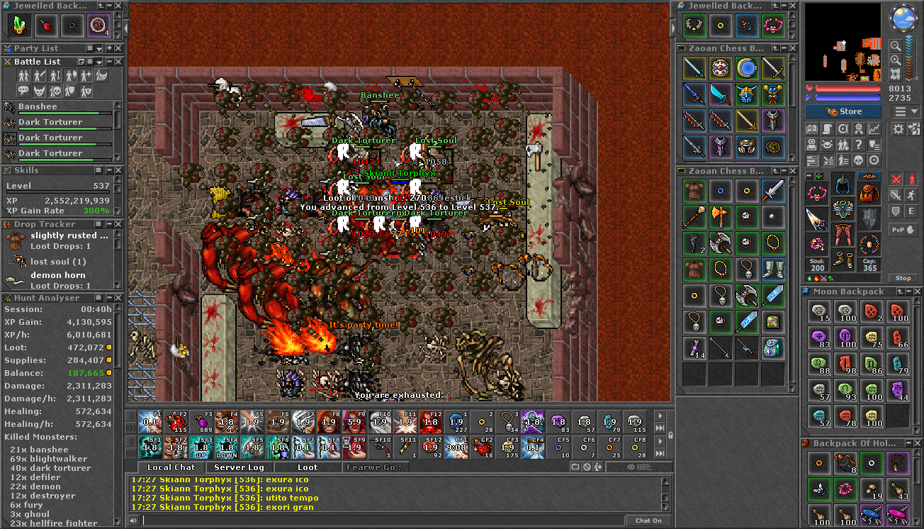 Para começar, Gentebra conseguiu terminar com sucesso o evento "Bewitched", então o mundo está com o boostzinho de +50% na xp rate, sendo assim mesmo eu praticamente não caçando, ainda assim consegui upar 2 lvl nas huntzinhas que faço na POI: