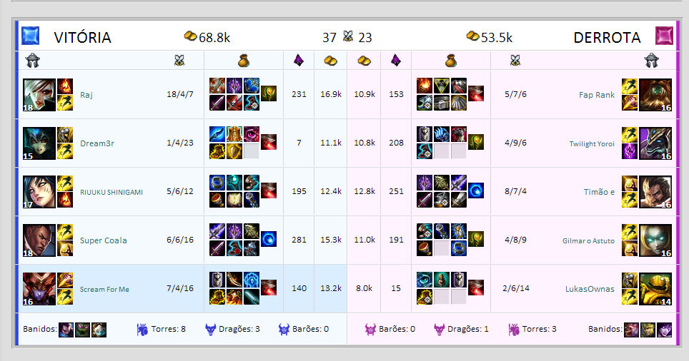 Thanks Gryllo! Bom cara você é um cara bem ocupado, tem serviço em vários sites e não deve ter tanto tempo pro legends, faz parte, quando tu resolver investir mais tempo no game e tua prática ficar no level viciado igual eu tu avança também