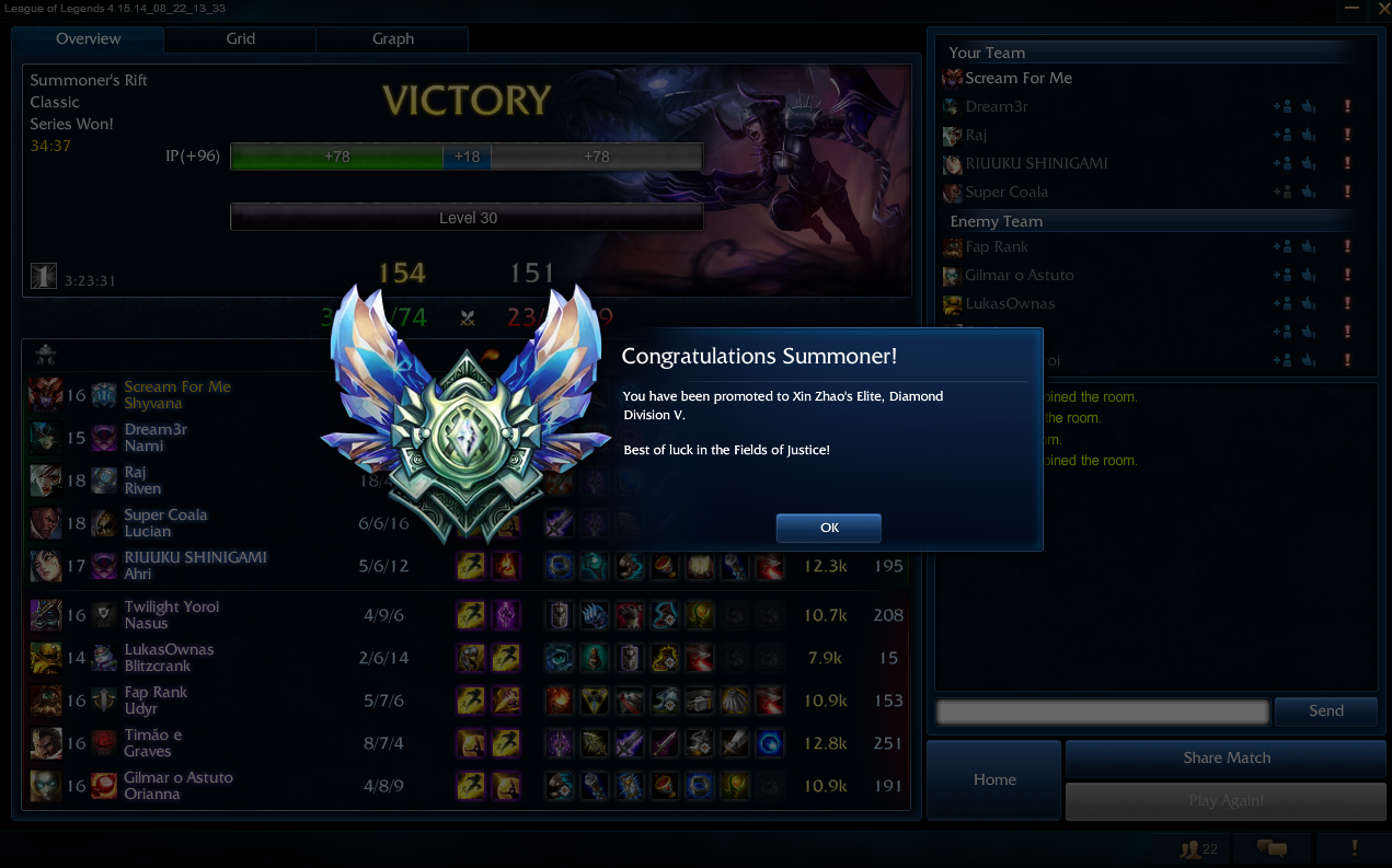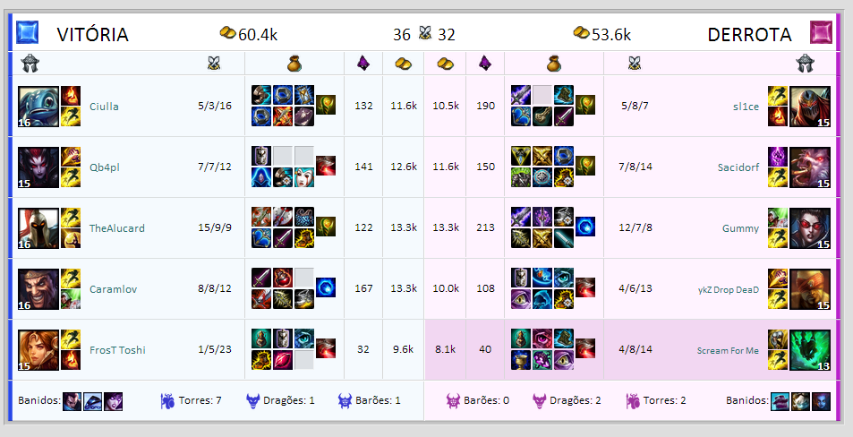 Dedico isso a todos vocês do fórum, que me ajudaram e muito quando eu havia perdido minha conta, foi muito dificil ver minha conta que eu tanto lutei na Season 2,3 e 4, ser destruída em poucas semanas até o Gold 1, a conta chegou a ficar 40 partidas negativas, meu MMR era horrível, ganhava 10 pdl, perdia 20. Mas eu não iria desistir, eu sabia que eu conseguiria, muita gente mais uma vez duvidou de mim, como sempre, mas eu mostrei que fui capaz e que consegui passar por todo aquele sufoco.
