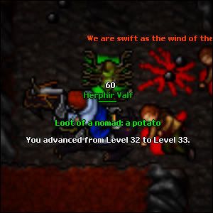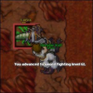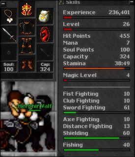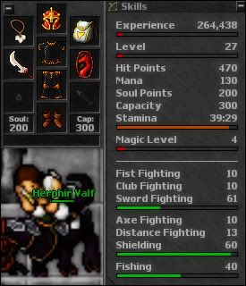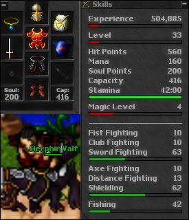 O Nome Herphir Valf e o mundo escolhido foram sugeridos pela CipSoft. No momento estava treinando, segue a ScreenShot: