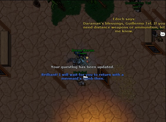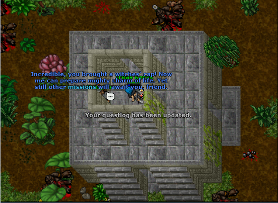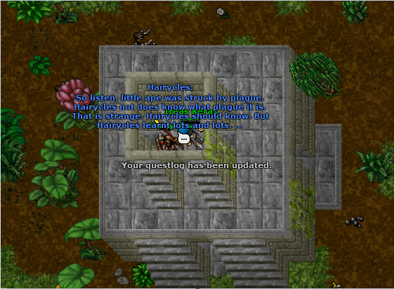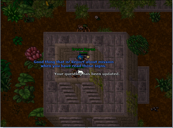 Aproveitei também para abrir a quest do primeiro addon do Oriental Outfit. Considerando que ainda tenho que terminar a The Explorer Quest para pegar o pente, vou poder fazer as duas missões ao mesmo tempo...