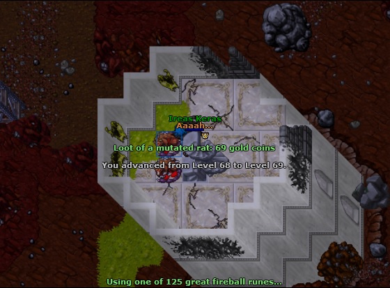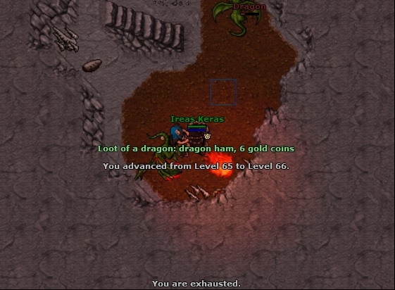 Após ter dado de presente pro Ireas as Ultimate Spells, estava só buscando pela oportunidade perfeita de testá-las. Eis que, em uma das minhas visitas costumeiras às Dragon Lairs de Ankrahmun, fiz o meu primeiro hit com a Eternal Winter: