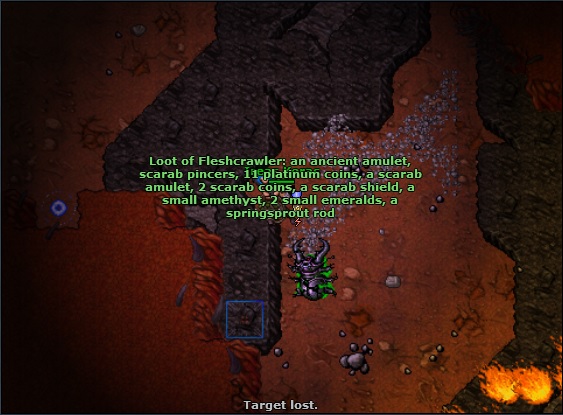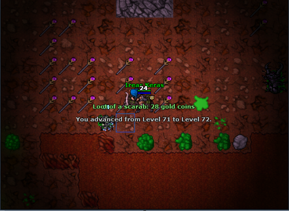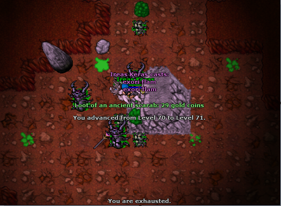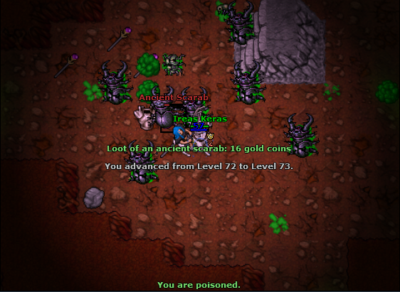 Depois, acabei fazendo uma visitinha aos Ancient Scarabs. Infelizmente, minha internet não estava colaborando muito, e acabou que tive que sair da área de spawn deles antes de upar. Ainda assim: