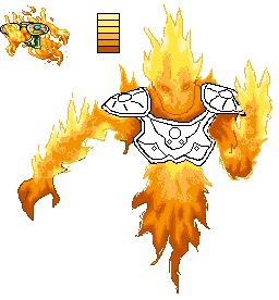 Eu não aconselho colorir tudo de uma vez, procure colorir áreas equivalentes primeiro (como as áreas com fogo) e depois as restantes (Armadura)... O esquema é o mesmo, primeiro coloque cores primárias, detalhes vêm depois: