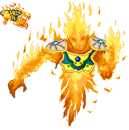 Agora basta que você arrume os menores detalhes, como tentar colorir melhor as áreas que ficaram 'brancas' e também retirar as linhas 'pretas' da armadura, por exemplo... Eu havia mudado a parte de baixo dele pois com a coloração diferenciada o desenho mudou muito, então tente se adaptar. Se não quiser desenhar um fundo, escolha uma cor que dê retoque às cores do seu desenho... Não adianta nada fazer um desenho amarelo e colocar a cor de fundo verde claro, já que o desenho tendo uma cor clara, não vai aparecer direito por causa do fundo. O preto é bom para ser usado se seu desenho tiver mais cores claras e o branco se seu desenho tiver mais cores escuras, mas vem de gosto. Acompanhe o desenho terminado: