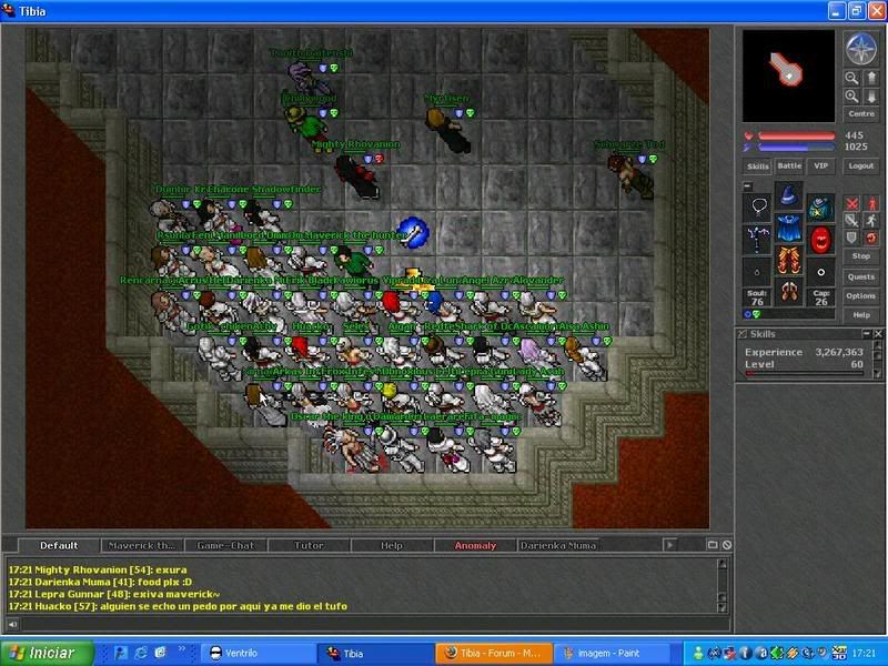 Fizemos um experimento em Lunara pra ver quantas pessoas queriam fazer a quest da Banuta, em Lunara. Conseguimos passar da primeira parte, e quando estavamos fazendo a ultima missão, das catacumbas, a gente pediu pra todo mundo se espalhar pela sala.