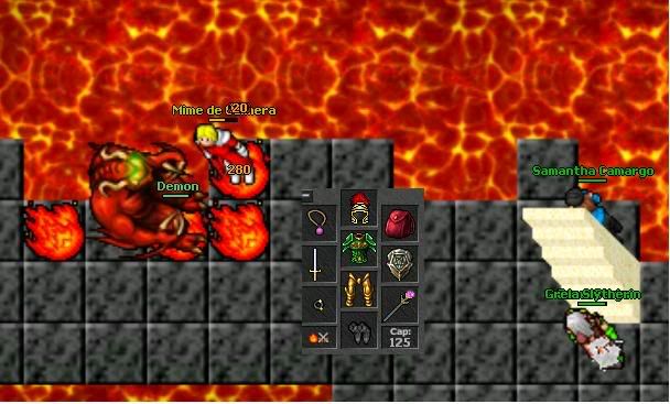 Level 90 e uma demon huntzinha de ontem, umas 5 horas acho, loot tosco, só demon shield, gs e fire axe