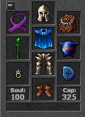 Steel Helmet, Scarf, Blue Robe, Terra Rod, Vampire Shield, Plate Legs, Leather Boots, Crystal Ring (só pra enfeitar :yelrotflm) e UH/IH.
