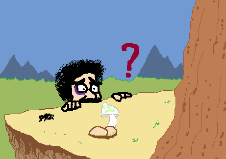 Nada de urubus na montanha. Não era um lugar tão deserto quanto o deserto mas não havia frutas suculentas ou pequenos animais saborosos. Em breve Guuk ficaria nervoso. Preocupado com a aranha, ele resolveu se meter em uma trilha por entre as pedras, onde o vento não estava tão forte. E qual não foi sua surpresa quando, em uma parte perto da parede da montanha crescia aquela estranha coisa de aparência fálica que poderia salvar seu dia. E, acreditem, coisas fálicas não faltavam na Montanha Quebra-Costas. Guuk imediatamente reconheceu um grande cogumelo, que parecia saboroso, crescendo ali entre as pedras em uma região sem sol. Ele só não conhecia aquela espécie, nativa das montanhas. Bom... O pior que poderia lhe suceder era o cogumelo ser daqueles comestíveis apenas uma vez. Com isso, Guuk e Pyuda comeram o cogumelo, na esperança de reporem suas energias. E estava muito bom, com um sabor levemente terroso. Gosto de terra molhada; coisa que eles não viam há um tempo.