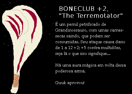 NOTA: Ao pegar a arma, Guuk ouviu sua descrição narrada por Cid Moreira. Aquele Velho Bento, realmente, tem MUITO poder!!!