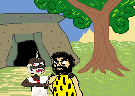 Guuk, então, foi porretear o bicho sem cerimônia. Mas Pimpão era macaco velho e se esquivou, contra-atacando com uma série de patadas furiosas. Essas sim, acertaram Guuk. Ah, meus amigos... A Tempestade de Patas de Pimpão pegou onde não devia. Bem no ESTÔMAGO!!! Ponto fraco de Guuk! Podia pegar no nariz, no peito... até no entre-pernas, mas justo onde a sagrada comida fazia a digestão?? Ah, não, Pimpão!!! Não fosse isso, talvez Guuk até teria acabado sua vida gulosamente papado por um urso grande e velho. Seria o melancólico fim de Guuk e da história.