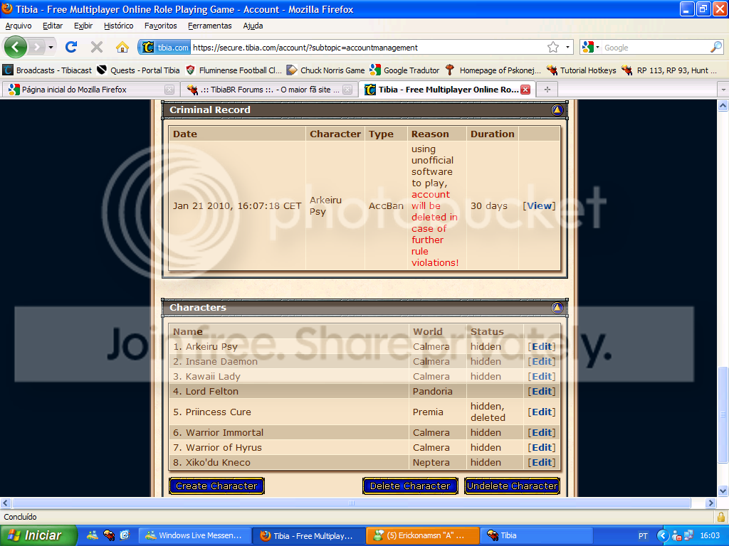 Tipow.. eu não uso bot nem nada, só tenho no máximo tibia em versões diferente pra poder jogar OT com amigos e tals,principalmente quando to sem net: