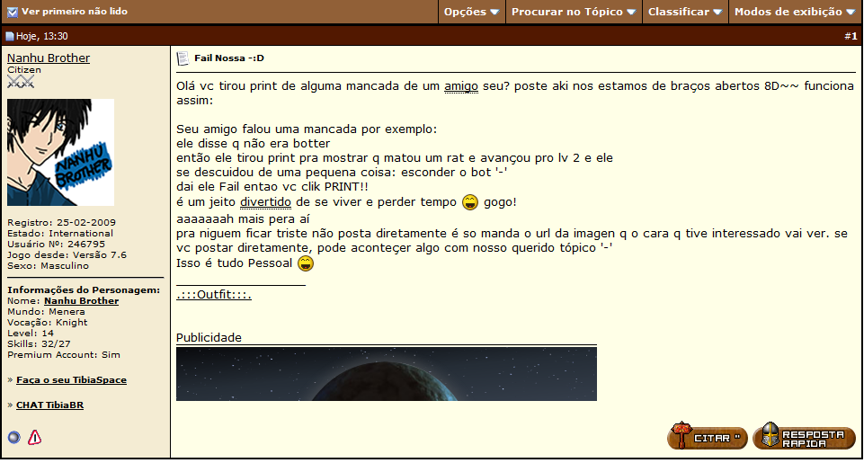 Olá vc tirou print de alguma mancada de um amigo seu? poste aki nos estamos de braços abertos 8D~~ funciona assim:
