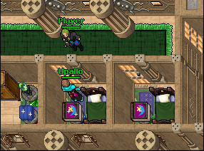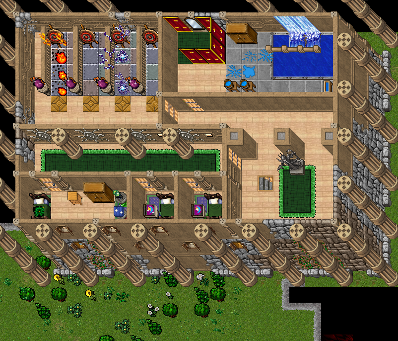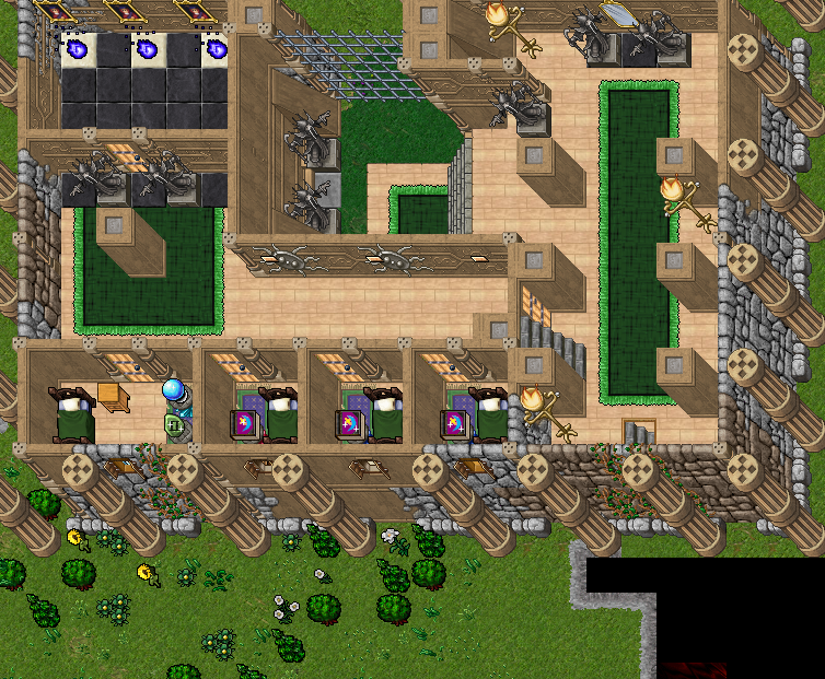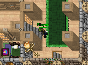 Agora você pode entrar e sair da Academy a hora que quiser, apenas falando com o guarda na entrada. É bom ter acesso aqui pois pode-se comprar qualquer mana pot com 5gp de desconto, comprar UHs com 1 carga extra e vender alguns itens pelo mesmo preço que se vende nos djinns. Mas para isso você vai ter que ir completando a quest, para ir ‘liberando’ os npcs. Se você quiser pode explorar, mas não há muito que se fazer ainda. Suba as escadas ao seu lado, siga para baixo suba outro lance de escadas.