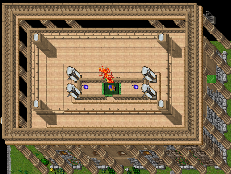 Agora é o seguinte, cada fogo azul leva para uma arena com um boss, esses 3 boss são bem fortes, então não aconselho ir sozinho, vá com mais mages que também estejam fazendo a quest. Depois de matar os bosses, você pode dar use no corpo deles e ganhar um item provando que você os matou. Não existe ordem correta para matar os bosses, você pode matá-los na ordem que preferir.