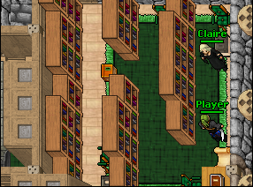 Claire é uma maga que pode ser encontrada na biblioteca no primeiro andar. Diga mission para ela, e ela dirá que precisa de alguma coisa para tampar os ouvidos porque não consegue se concentrar se tiver qualquer tipo de barulho. Dê um Pair of Earmuffs para ela (aquele helmet que parece um headphone), ela lhe agradecerá e agora comprará skulls de você por 20 gp cada. Para falar com ela agora, você precisa digitar tudo em letras maiúsculas.
