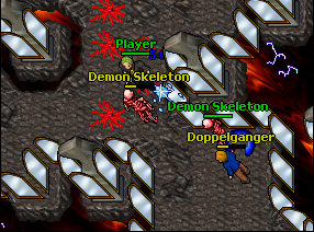O Doppelganger é igual um Warlock, só que com mais vida e ao invés de Stone Golens sumona Demon Skeletons. Além disso ele usa todos os elementos, incluindo holy. Tem fraqueza à fire, ice, earth e energy, é forte contra holy e imune a death.