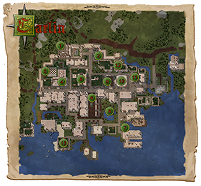 Quando seguir pelo caminho sugerido no nosso mapa, você encontrará a seguir uma (3) área de recreação logo ao sul do castelo, um parque no qual os residentes de Carlin aproveitam seu tempo de lazer nos tabuleiros de xadrez ou trilha. Sempre foi de grande interesse do governo da cidade promover um bom balanço entre trabalho e diversão.