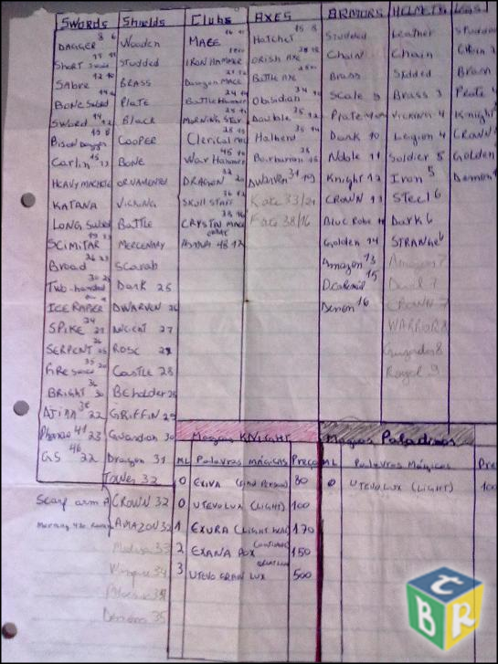 Anotações das informações do TibiaBR feitas pelo Edu, em 2006, as quais ele guarda até hoje.