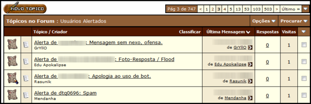 Citado por [USER="48441"]Sero[/USER] e por [USER="18573"]Dark Matter ||[/USER], o fórum interno é onde são registrados todos os alertas aplicados em nosso fórum. Esse é o visual que tem a seção interna de usuários alertados dos moderadores, seção essa que fica invisível para usuários normais e até para membros da equipe, como jornalistas. :'(