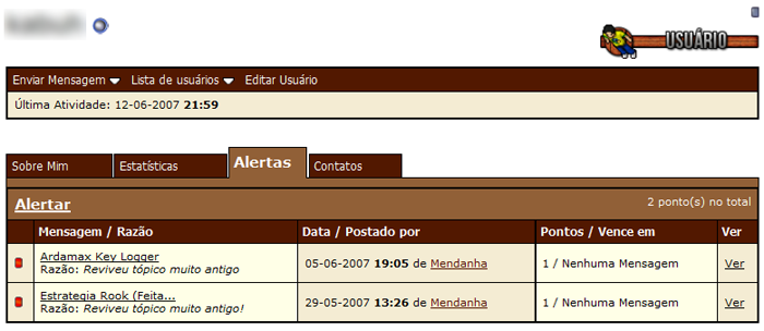 Uma das primeiras atuações do moderador em questão na equipe. O nome do meliante foi ocultado para preservar sua integridade física e psicológica, mas se você se reconhece, parabéns, você foi um dos primeiros a ser punido por [USER="126"]Mendanha[/USER]. A imagem também relata como a equipe tinha que ser mais dura antigamente. Se reclamam hoje da rigidez dos moderadores, vocês não tem ideia de como era naquela época.