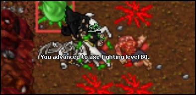 No dia anterior havia deixado o char treinando offline e quando entrei faltava muito pouco MESMO pra upar axe, fui brincar nos mutateds e PUM