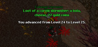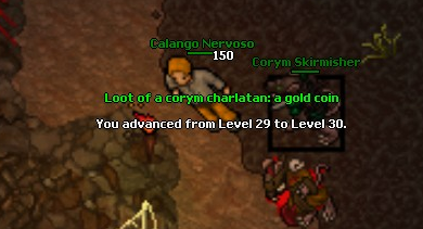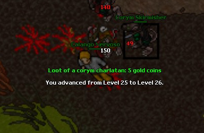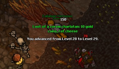 Assim que eu colocar premy irei fazer tasks, porém agora to gostando muito de hitar 150~160 com um char lv 20 e esses Coryms são muito bons de exp e loot, acho até meio desproporcional, porque eu to caçando la desde o lv 10 e não vejo dificuldade nenhuma nos Charlatan, acho que quanto botar premy estarei pra la do lv 25 ja.