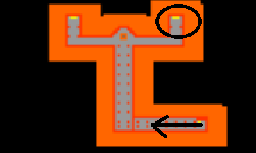Lure o warlock para dentro do triângulo, e quando ele entrar vá para a ponta mais "funda", nessa imagem a de <, o warlock irá para onde está ali e você vai para onde eu estou, atacando ele até a morte, ele não vai fugir.