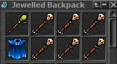 Loots: 0-80 Gold Coins, Bread, 0-4 Cherries, Great Health Potion, Poison Dagger, Skull Staff, 0-4 Assassin Stars (semi-raro), Dark Mushroom (semi-raro), Energy Ring (semi-raro), Great Mana Potion (semi-raro), Mind Stone (semi-raro), Blue Robe (raro), Candlestick (raro), Crystal Ring (raro), Inkwell (raro), Lightning Robe (raro), Luminous Orb (raro), Small Sapphire (raro), Talon (raro), Golden Armor (muito raro), Red Tome (muito raro), Ring of the Sky (muito raro), Stone Skin Amulet (muito raro), Piggy Bank (muito raro).